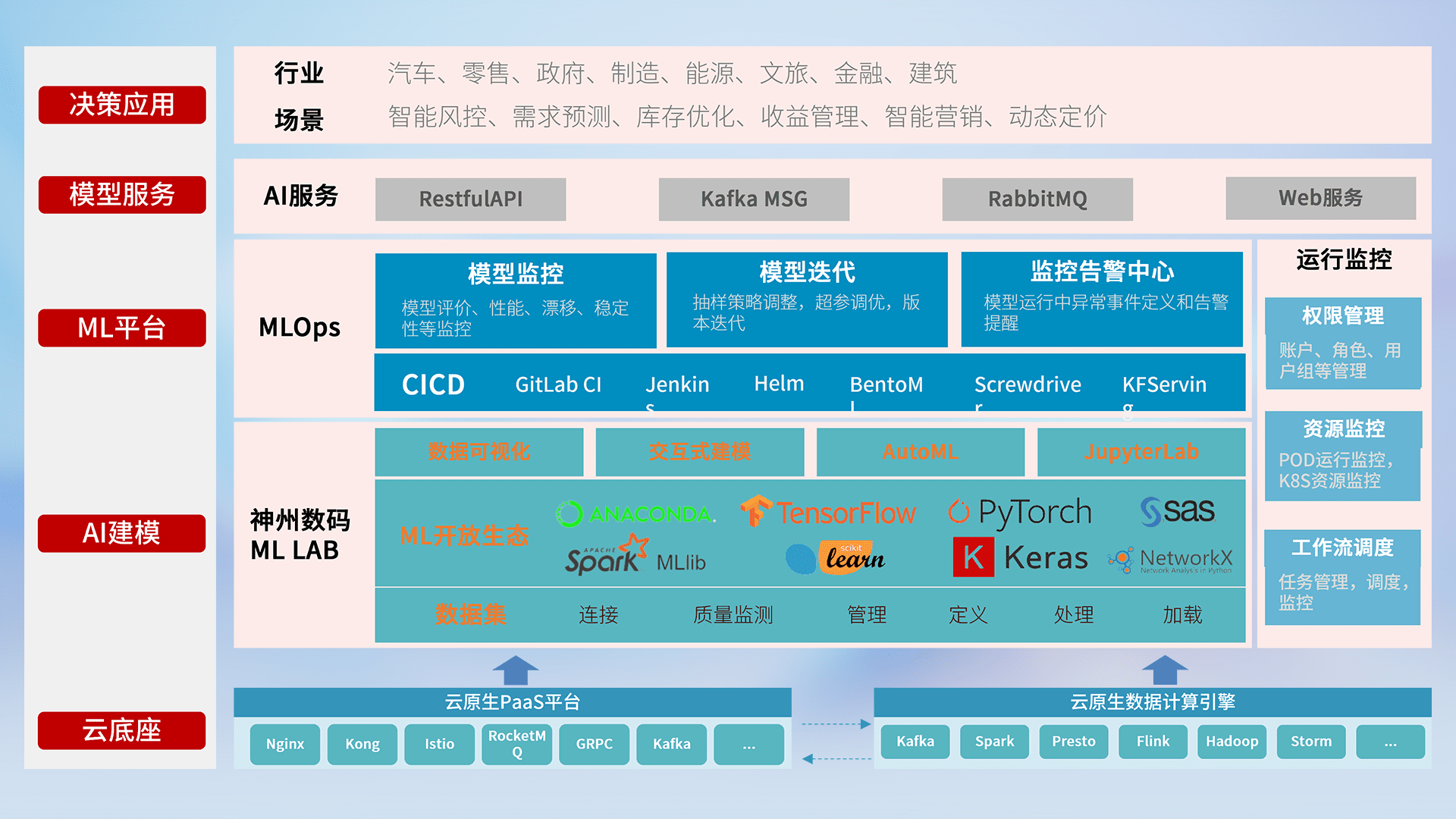 数据+模型双引擎驱动,,,面向智能服务场景,,,,快速灵活利用AI技术,,,,支持业务决策,,助力企业智能化转型破局。。
